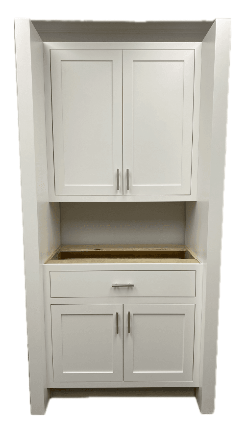 30″ Base Cabinet 21″ Deep (Two Doors One Drawer) 30″ X 36″ Wall Cabinets Two 3″ X 84″ X 24″ Support Columns